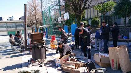 おやじの会メンバーが中心になってもち米を蒸してくれています。