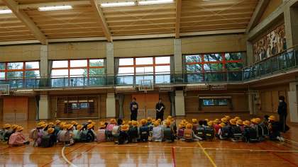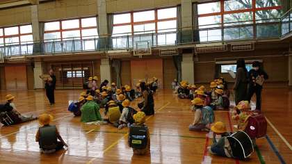今日は雨のため、帰りの準備をして体育館に集合しました。