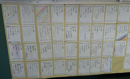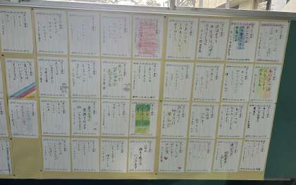 2階渡り廊下には、6年生が考えた「あいさつ標語」が並んでいます。学校にお越しの際はぜひご覧ください。