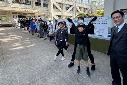 笹原小学校では、あいさつ週間の担当になった学年が正門に立ち、全校児童にあいさつをしています。