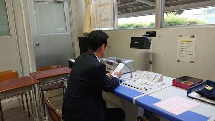 校長先生が、放送室から「朝のあいさつをしましょう。放送室まで各教室のあいさつの声が届くと嬉しいです。」と言うと元気いっぱいの「おはようございます!」が放送室まで届きました。