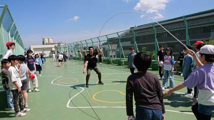 前半は学年遊び、後半は長縄跳びに取り組みます。