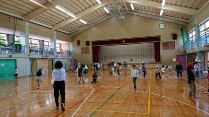 今日は、校庭では、2・4年生、屋上は5・6年生、体育館は3年生に割り当てられていました。