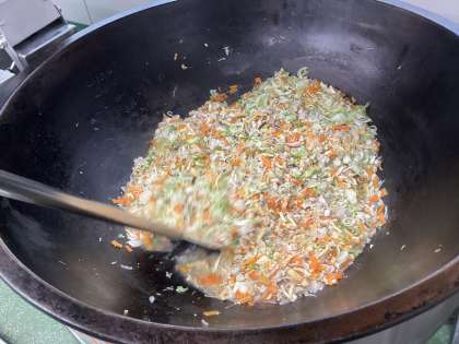 写真は、具材を炒めている時の様子です。