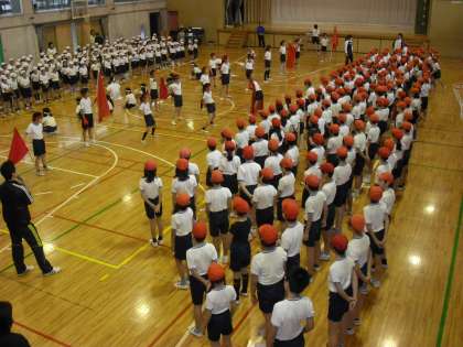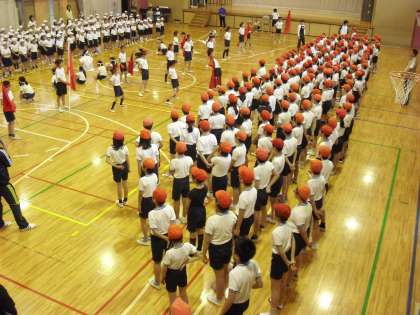 本日の全校練習は、雨天のため体育館で実施いたしました。