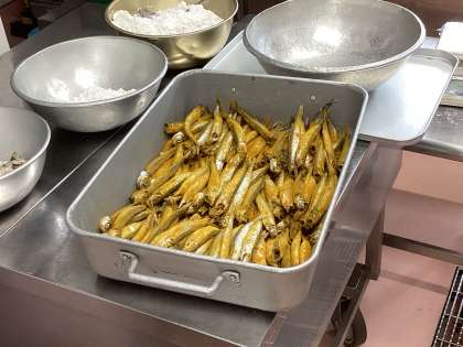 ししゃもの二色揚げは、カレーとごまの2種類です。