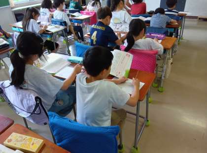 3年3組は4時間目に道徳科の授業を行いました。この授業は3年3組で3週間教育実習をした実習生の研究授業でした。子どもたちは題材文を読み深めた後、これからの自分の生活で生かしていきたいことについて、ワークシートに書きました。最後はみんなで発表し合い、力を合わせて働くことのよさについて考えを深めていました。