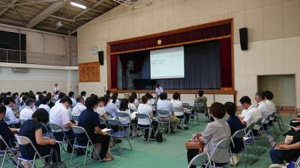 全体会では、研究テーマ「非認知能力の育成」について桜丘中学校校長先生の講演がありました。