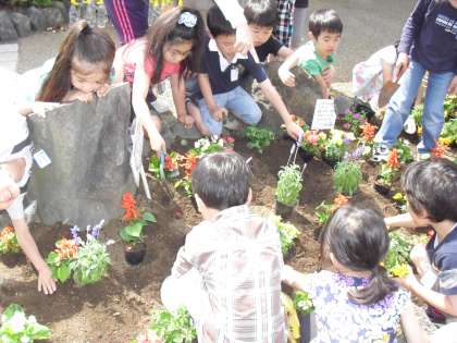 5月30日 ぐるうぷ街の方のご協力をいただいて、学校の西側の通学路に季節のお花を植えました。
