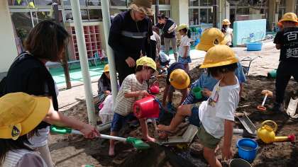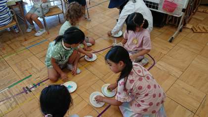 今日の午前中は6月に雨天のため延期となった幼稚園交流がありました。