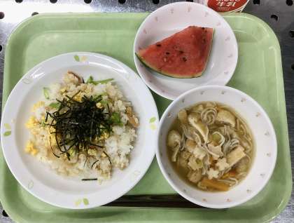 今日は、七夕五目ずし、天の川すまし汁、すいか、牛乳です。