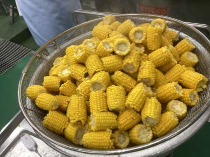 今日は、2年生が皮むきをしてくれたとうもろこしを提供しました。