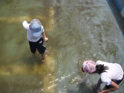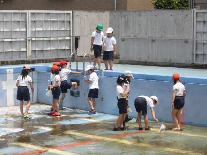 6月8日 水を抜いたプールでトンボの幼虫ヤゴを採集しました。