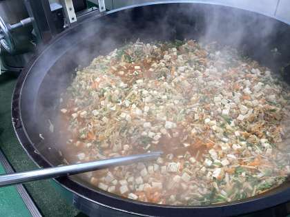 今日は、ごまごはん、豆腐チゲ、ナムル、牛乳です。