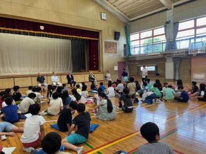 今日の4時間目に、地域の方にご来校いただき、お話会を行いました。今と昔の桜丘の違いや、小学校の様子、当時どんな遊びをしていたかなど、たくさんお話を聞かせていただきました。「当時のお小遣いは200円だったよ。」「学校の1クラスは60人だったよ。」などと教えていただき、子どもたちは「え〜!!!」と驚きがたくさんあったようでした。