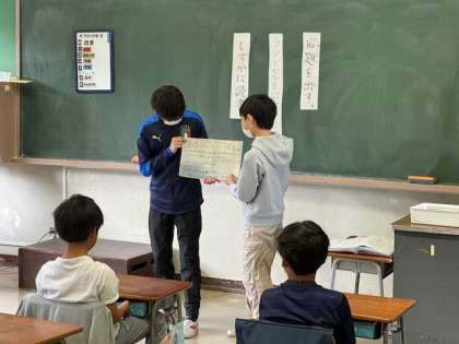 子どもたちは、「ベルマークを集めて、困っている学校を助けよう」というめあてで学校全体で楽しめる活動にしようと、これまで準備をしてきました。