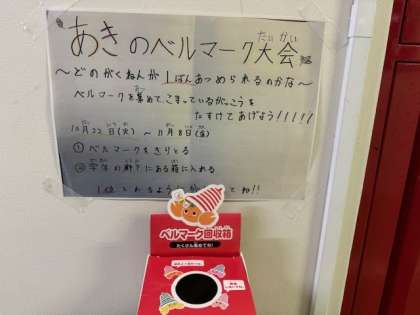 さっそく、ベルマークを見付けて集めている子もいるのか、回収ボックスにいくつものベルマークが入っています。