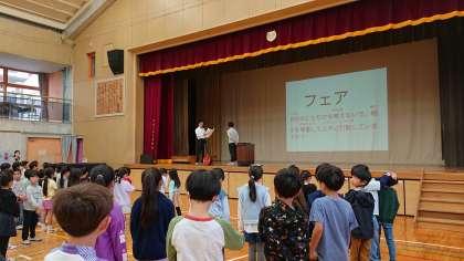 今日の全校朝会では、校長先生から「フェア・公平」についてお話がありました。