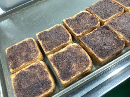 そんな胚芽パンに今日は、バター・ココア・グラニュー糖を合わせて作ったココアペーストを塗り、焼きあげました。