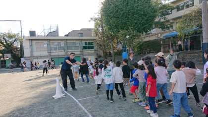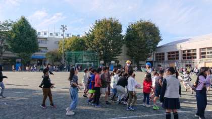 今日は、久しぶりのお日様でよい天気の中、校庭で「ハロウィンおにごっこ集会」を行いました。