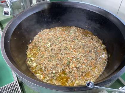 今日の豚丼には、噛み応えのある食品「ごぼう」を入れています。