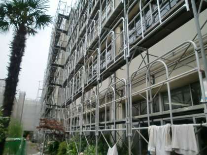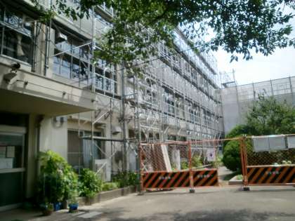昨年度に引き続き、今年度、北校舎・渡り廊下・給食室の防水塗装工事が先週の土曜日