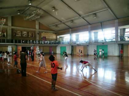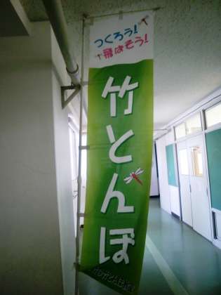 竹とんぼで体育館へ行き、飛ばしてみました。思った以上に