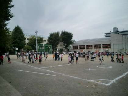 体育集会では、初めに6年生による長縄の模範演技をしてくれました。