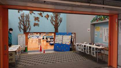 子どもたちは登校時に、正門に立てかけてある「展覧会」の看板を見て、「家の人は今日来てくれるかなぁ。分かっているかなぁ。」といった声がありました。