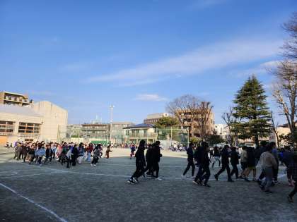今日は初日のため、朝の時間にみんなで自分のペースで音楽に合わせて走りました。