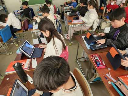 学習用タブレット端末をしっかり学習の中で活用する子どもたちの姿が見られました。