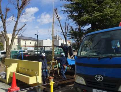 今日は、笹原小学校のシンボルツリー「ポプラの木」復活の植樹を行いました。