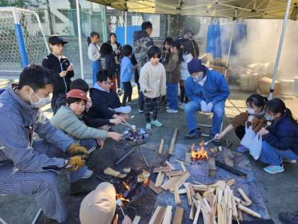 校庭では、もち米を蒸したり、マシュマロ焼きや焼き芋など…屋外での楽しい体験ができました。