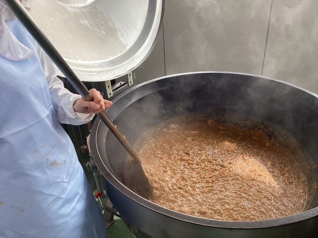 今日の笹原小学校のカレーはアレルギーのある児童でも食べられるように、特定原材料の8品目を使用せずに作りました。ほんのり甘みのあるカレーに仕上がりました。