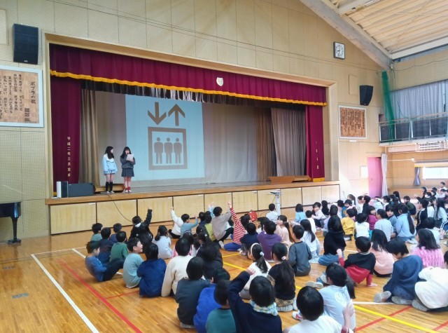 今日は体育館で「ピクトグラム」集会がありました。どんな集会なのか楽しみにしながら子どもたちが体育館に集まりました。集会では、街や様々な施設で見かけるピクトグラム(図柄)が意味するものを当てるクイズでした。ピクトグラムのデザインが良いのか、子どもたちが物知りなのか、ほとんどの問題で子どもたちは正解していました。たくさんの問題を調べて、作成してくれた集会委員会のみなさん、ありがとうございました。