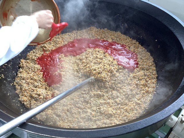 今日はミートソースです。ひき肉とみじん切りにした野菜を炒め、ケチャップなどで味付けをしました。