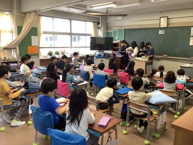 それぞれの班には6年生の班長さんがおり、遊びや、話し合いなどでみんなを引っ張っていってくれます。