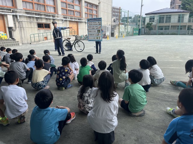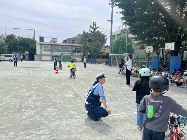 世田谷警察の方が来てくださり、安全に自転車に乗れるように大切なことをお話ししてくださいました。