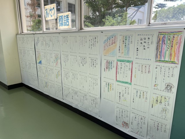 また、2階渡り廊下にはあいさつ標語も掲示されています!ぜひご覧ください!