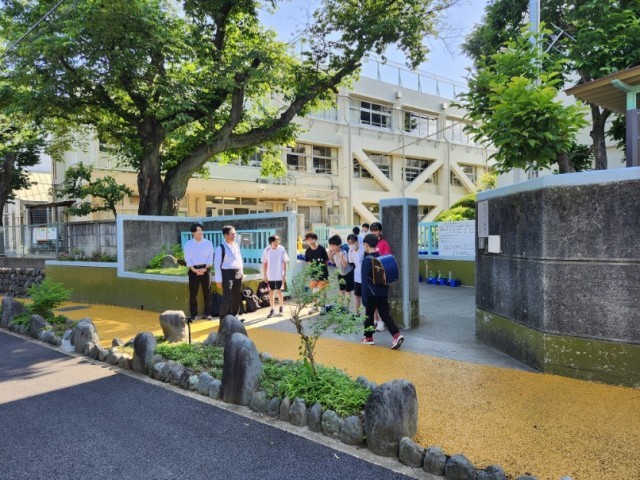 そして、火曜と木曜は桜丘中学校の生徒と先生が笹原小の正門であいさつキッズの5年生と一緒に元気にあいさつをしてくれています。