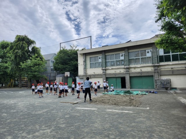 校庭では、ソフトボール投げと立ち幅跳びを行いました。