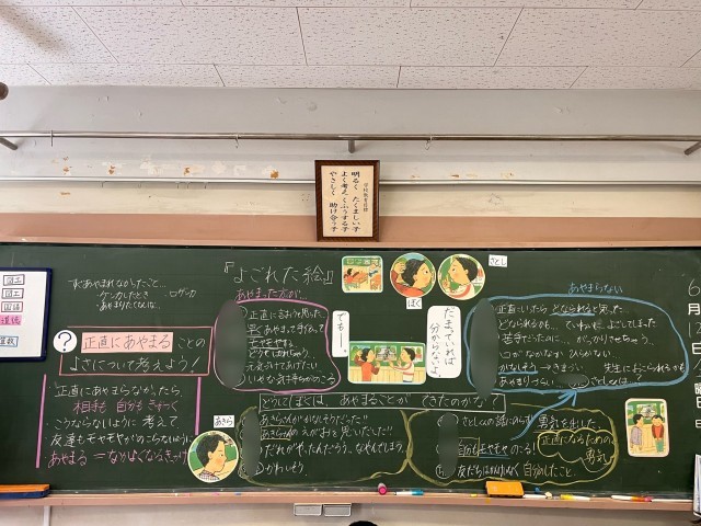 3年生では、「よごれた絵」という教材を通して、正直に謝ることの大切さについて考えました。
