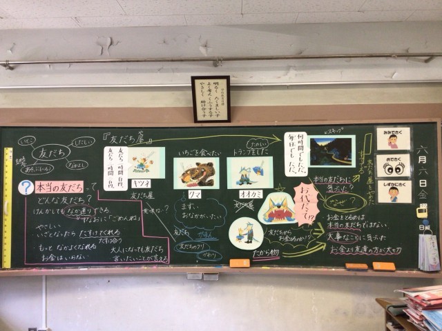 「友だち屋」の教材を通して、「本当の友だちって、どんな友だち?」ということについて考えました。