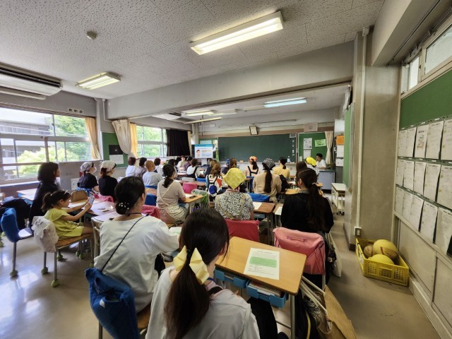 そして、給食当番・配膳など子どもたちと同じような流れで給食試食です。