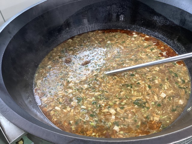 最後には粉かつおを入れ、肉、魚、野菜の旨みを出したスープに仕上げました。