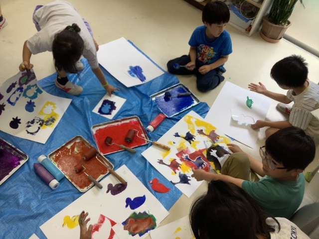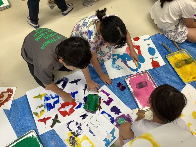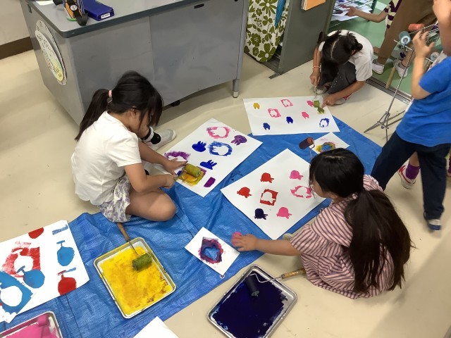 図画工作「いっぱいうつして」の学習で、型版画に挑戦中。