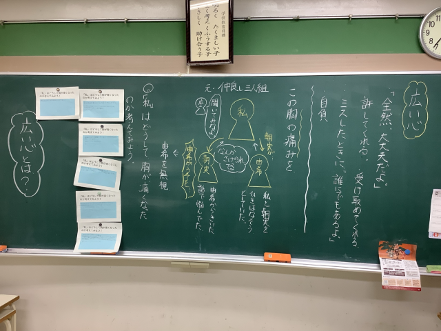 道徳月間にて、先日、6年生の道徳「この胸の痛みを」の学習をしました。