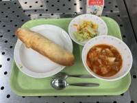 今日は、中学校の回鍋肉丼、中華風大根、卵入り豆腐チゲ風スープ、牛乳です。今日は、...