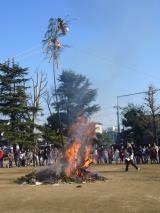 1月16日、笹原小学校遊び場開放委員会企画運営の「どんど焼き」が学校の校庭で行...
