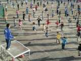 短なわを使って、いろいろな跳び方を練習したり、音楽に合わせて跳んだりしました...